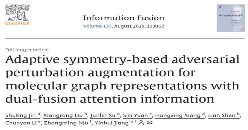 在AI底层技术领域,德睿智药联合厦门大学等国内高校在人工智能与信息融合领域的排名第一顶刊《Information Fusion》(IF: 15.5)发表了题为“Adaptive symmetry-based adversarial perturbation augmentation for molecular graph representations”的算法研究。